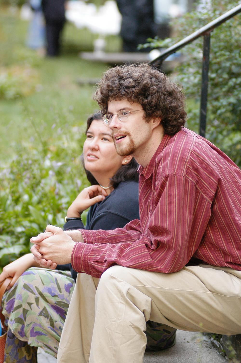 The background: Meg and Jonathan got married in late September 2003. Christian and I got married in mid-September 2004. Miriam, who came to both weddings, put the pieces together when she told the four of us, excitedly, that we shared a wedding anniversary according to the Jewish calendar.