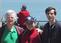 Two visitors with unknown statue