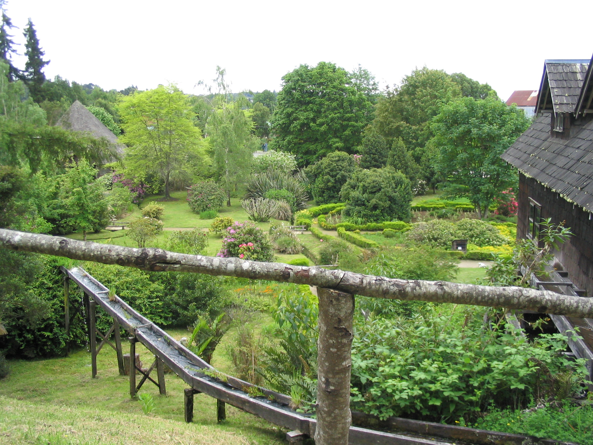 A glimpse of the museum's gardens and historical reconstructions