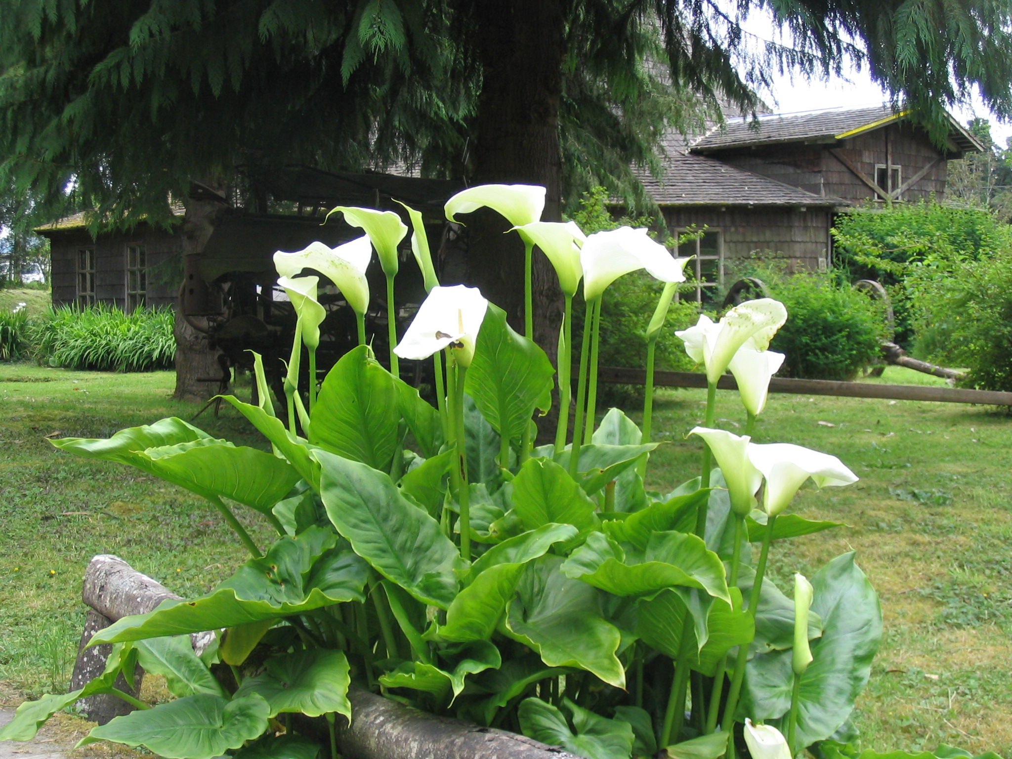Calla lilies and an unusual pine