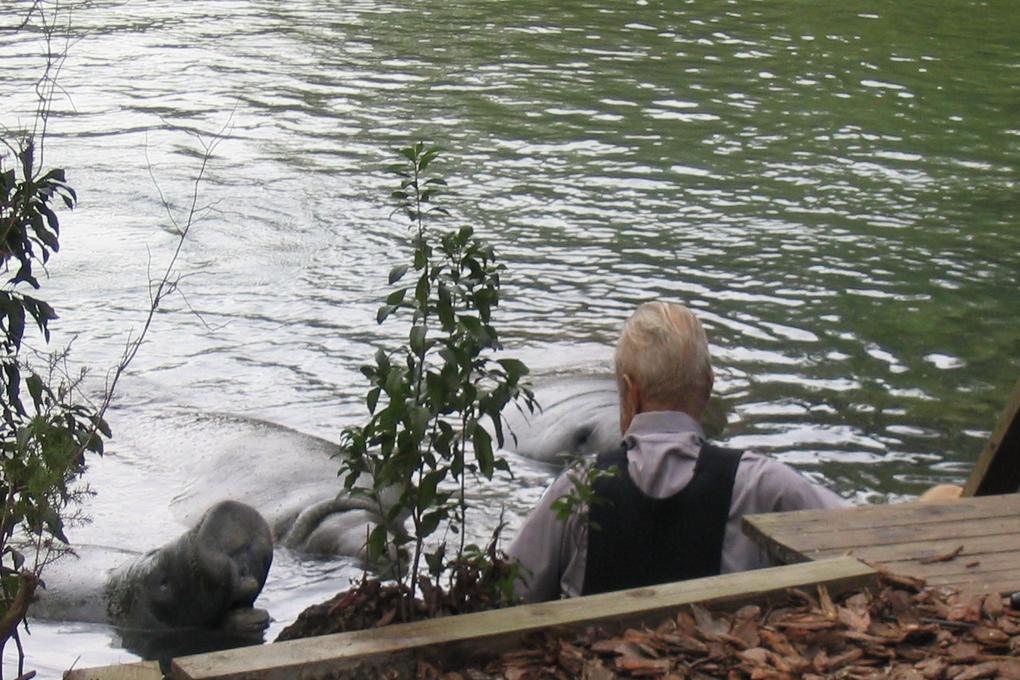 Park ranger with manatees